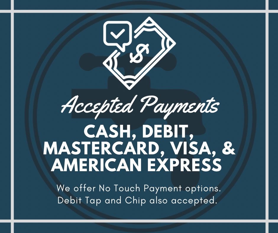 While we always accept Cash, we also accept Debit, Visa, MasterCard & American Express.