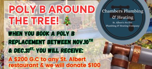 Receive a $200 G.C to any St. Albert Restaurant when you book a Poly B replacement between Nov.10th & Dec. 31st. As a bonus, we will also donate $100 to the St. Albert Food Bank or Salvation Army!